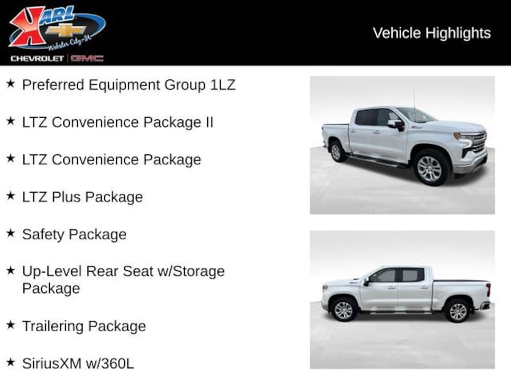 CARFAX One-Owner. Clean CARFAX. Certified. 2022 Chevrolet 4WD Iridescent Pearl Tricoat 10-Speed Automatic EcoTec3 5.3L V8 10-Speed Automatic, 4WD, Gideon/Very Dark Atmosphere Leather, 10-Way Power Driver Seat w/Lumbar, 10-Way Power Passenger Seat Adjuster w/Lumbar, 12.3 Multicolor Reconfigurable Digital Display, 120-Volt Bed Mounted Power Outlet, 120-Volt Instrument Panel Power Outlet, 2 USB Data Ports, 2nd Row Heated Outboard Seats, Adaptive Cruise Control, Auto-Dimming Inside Rear-View Mirror, Auto-Locking Rear Differential, Bluetooth® For Phone, Chevrolet Connected Access Capable, Chevytec Spray-On Black Bedliner, Chrome Mirror Caps, Color-Keyed Carpeting Floor Covering, Compass, Deep-Tinted Glass, Driver Memory, Dual Rear USB Ports (Charge Only), Electric Rear-Window Defogger, Electrical Steering Column Lock, Electronic Cruise Control, Floor Mounted Center Console, Front Frame-Mounted Black Recovery Hooks, Front LED Fog Lamps, Front Rainsensing Wipers, Front Rubberized Vinyl Floor Mats, HD Surround Vision, Heated Driver & Front Outboard Passenger Seats, Heated Steering Wheel, Hitch Guidance, Hitch Guidance w/Hitch View, Integrated Trailer Brake Controller, Keyless Open & Start, Leather Wrapped Steering Wheel, LED Cargo Area Lighting, LTZ Convenience Package, LTZ Convenience Package II, LTZ Plus Package, OnStar & Chevrolet Connected Services Capable, Outside Heated Power-Adjustable Mirrors, Perimeter Lighting, Power Front Passenger Windows w/Express Up/Down, Power Front Windows w/Driver Express Up/Down, Power Rear Windows w/Express Down, Power Sliding Rear Window w/Rear Defogger, Power Tailgate, Power Tilt & Telescoping Steering Column, Preferred Equipment Group 1LZ, Premium Bose 7-Speaker Sound System, Rear Cross Traffic Alert-Braking, Rear Pedestrian Detection, Rear Rubberized-Vinyl Floor Mats, Rear Wheelhouse Liners, Remote Vehicle Starter System, Safety Alert Seat, Safety Package, SiriusXM w/360L, Standard Tailgate, Steering Wheel Audio Controls, Theft Deterrent System (Unauthorized Entry), Trailer Camera Provisions, Trailer Side Blind Zone Alert, Trailering App, Trailering Package, Ultrasonic Front & Rear Park Assist, Universal Home Remote, Up-Level Rear Seat w/Storage Package, Ventilated Driver & Front Passenger Seats, Wi-Fi Hot Spot Capable, Wireless Charging, Wireless Phone Projection.
