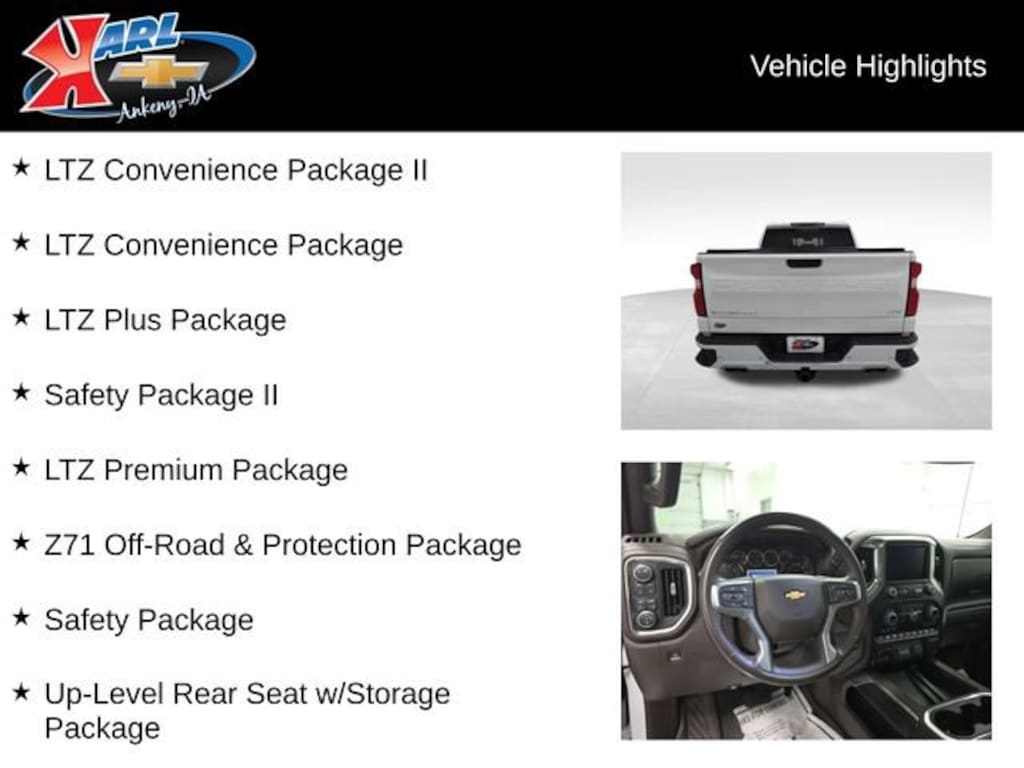 Certification Program Details: Karl Chevrolet of Ankeny, The Nation's #1 CarBravo Certified Dealer! Every CarBravo Certified vehicle includes: Comprehensive 126-Point Inspection Professionally inspected by factory-trained technicians to meet strict mechanical, safety, and cosmetic standards. 12-Month / 12,000-Mile Bumper-to-Bumper Limited Warranty Enjoy added peace of mind with extensive coverage from the day you drive off the lot. 24/7 Roadside Assistance & Courtesy Transportation Flat tire? Dead battery? Need a tow? You're covered anywhere, anytime throughout the warranty period. Vehicle History & Title Guarantee Clean title, completed safety recalls, and a full CARFAX® or AutoCheck® report provided for complete transparency. 10-Day / 500-Mile Exchange Promise If you don't absolutely love it, bring it back and exchange it — no hassle, no stress. Experience peace of mind and premium protection — exclusively from Karl Chevrolet of Ankeny, the Nation's #1 CarBravo Dealer!
