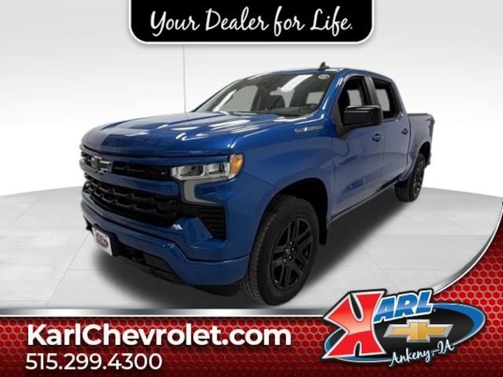 Certification Program Details: Karl Chevrolet of Ankeny, The Nation's #1 CarBravo Certified Dealer! Every CarBravo Certified vehicle includes: Comprehensive 126-Point Inspection Professionally inspected by factory-trained technicians to meet strict mechanical, safety, and cosmetic standards. 12-Month / 12,000-Mile Bumper-to-Bumper Limited Warranty Enjoy added peace of mind with extensive coverage from the day you drive off the lot. 24/7 Roadside Assistance & Courtesy Transportation Flat tire? Dead battery? Need a tow? You're covered anywhere, anytime throughout the warranty period. Vehicle History & Title Guarantee Clean title, completed safety recalls, and a full CARFAX® or AutoCheck® report provided for complete transparency. 10-Day / 500-Mile Exchange Promise If you don't absolutely love it, bring it back and exchange it no hassle, no stress. Experience peace of mind and premium protection exclusively from Karl Chevrolet of Ankeny, the Nation's #1 CarBravo Dealer! Wheels: 20 x 9 High Gloss Black Painted Alum Protection Package Seats, Front Bucket Glacier Blue Metallic Trailer Brake Controller, Integrated All-Weather Floor LinersThis 2022 Chevrolet Silverado 1500 RST 4WD CREW CAB 147 RST is a powerful and capable truck that's ready to take on any challenge. Under the hood, you'll find the EcoTec3 5.3L V8 engine paired with a smooth-shifting 10-speed automatic transmission, delivering impressive performance and efficiency with 16 city/20 highway MPG.The Silverado RST is loaded with premium features that elevate the driving experience. The high-gloss black 20-inch wheels and sleek exterior design give this truck a bold, commanding presence on the road. Inside, you'll enjoy the comfort of the front bucket seats, dual-zone automatic climate control, and a state-of-the-art infotainment system with wireless Apple CarPlay and Android Auto compatibility.For added convenience and versatility, this Silverado is equipped with a range of thoughtful features, including an integrated trailer brake controller, all-weather floor liners, and a protection package that includes wheel house liners and a Chevytec spray-on bedliner. Whether you're hauling heavy loads, towing a trailer, or simply enjoying the open road, this Silverado RST is up for the task.This vehicle has been meticulously inspected and certified through the Karl Chevrolet CarBravo program, ensuring you can drive with confidence. With a comprehensive 126-point inspection, a 12-month/12,000-mile bumper-to-bumper warranty, and 24/7 roadside assistance, you can trust that this Silverado is in top-notch condition.At Karl Chevrolet, we're committed to providing our customers with the highest level of service and satisfaction. Our expert team is here to help you find the perfect vehicle to fit your needs and lifestyle. We invite you to come in and experience the difference at Karl Chevrolet, the Nation's #1 CarBravo Dealer.At Karl Chevrolet we want to help you find the best new or used car in Ankeny that suits your needs. When you buy a new car at Karl Chevrolet you know you're finding a vehicle you can rely on. We have a great selection of Platinum Quality Pre-Owned Vehicles. We also pride ourselves in creating a friendly atmosphere and a reliable Dealership that you can trust. Call us and our experts will be glad to help you! (515) 299-4300. *Equipment and options are generated by a 3rd party vendor, exact vehicle options may vary. Please see a salesperson for complete details and vehicle information.