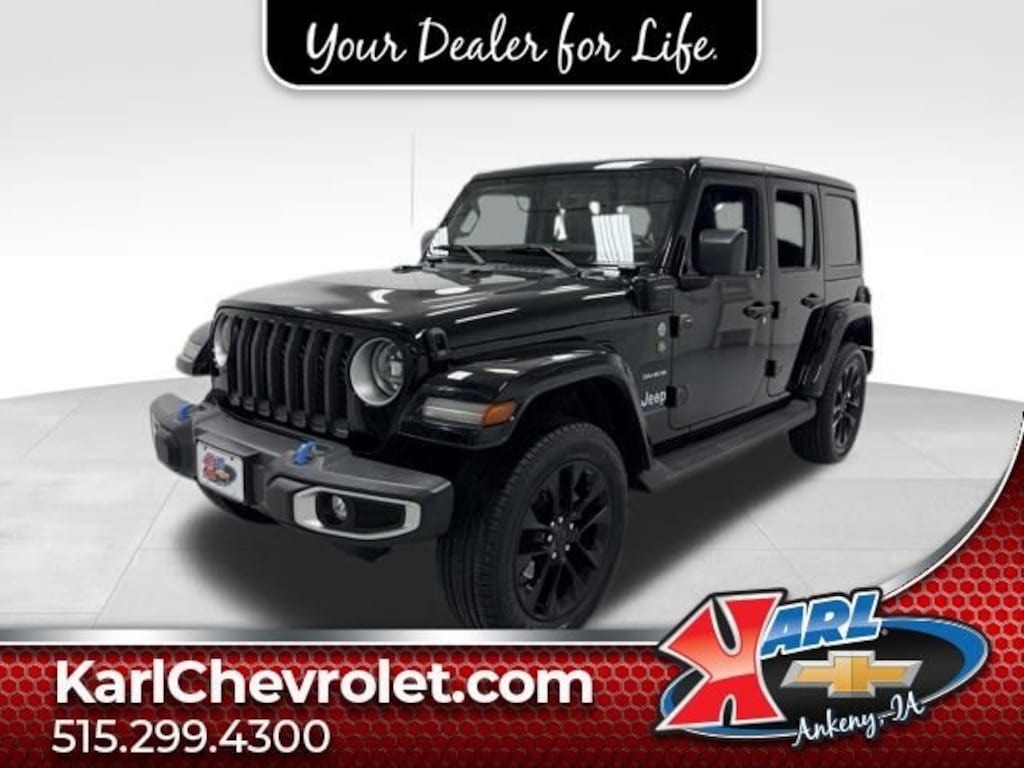 Certification Program Details: Karl Chevrolet of Ankeny, The Nation's #1 CarBravo Certified Dealer! Every CarBravo Certified vehicle includes: Comprehensive 126-Point Inspection Professionally inspected by factory-trained technicians to meet strict mechanical, safety, and cosmetic standards. 12-Month / 12,000-Mile Bumper-to-Bumper Limited Warranty Enjoy added peace of mind with extensive coverage from the day you drive off the lot. 24/7 Roadside Assistance & Courtesy Transportation Flat tire? Dead battery? Need a tow? You're covered anywhere, anytime throughout the warranty period. Vehicle History & Title Guarantee Clean title, completed safety recalls, and a full CARFAX® or AutoCheck® report provided for complete transparency. 10-Day / 500-Mile Exchange Promise If you don't absolutely love it, bring it back and exchange it no hassle, no stress. Experience peace of mind and premium protection exclusively from Karl Chevrolet of Ankeny, the Nation's #1 CarBravo Dealer! Black 3-Piece Hard Top Freedom Panel Storage Bag Rear Window Defroster Rear Window Wiper/Washer Heated Steering Wheel Remote Start System Heated Front Seats Class II Receiver Hitch 7 & 4 Pin Wiring Harness Auxiliary Switches Navigation System Radio: Uconnect 4C Nav w/8.4 Display Front dual zone A/C Rear Window Defroster ParkView Rear Back-Up Camera Apple CarPlay/Android AutoThis 2023 Jeep Wrangler Sahara 4xe SAHARA 4X4 is a true off-road champion that's ready to take you on all your adventures. With its powerful 2.0L I4 DOHC engine and 8-speed automatic transmission, you'll have the capability to conquer any terrain. The Black exterior color gives this Wrangler a bold and rugged look, while the premium interior features like the Heated Steering Wheel, Heated Front Seats, and Uconnect 4C Nav system ensure your comfort and convenience.The Sahara 4xe model takes the Wrangler's legendary off-road prowess to the next level with its advanced hybrid powertrain. This allows you to enjoy exceptional fuel efficiency and reduced emissions without sacrificing the Wrangler's legendary capability. Whether you're tackling the trails or commuting to the office, this Wrangler Sahara 4xe is the perfect companion.In addition to its impressive performance and features, this Wrangler is also part of our exclusive CarBravo Certified program. This means it has undergone a comprehensive 126-point inspection by our factory-trained technicians and comes with a 12-month/12,000-mile bumper-to-bumper warranty, 24/7 roadside assistance, and a vehicle history and title guarantee. You can drive with confidence knowing this Wrangler has been meticulously inspected and reconditioned to the highest standards.Don't miss your chance to own this exceptional 2023 Jeep Wrangler Sahara 4xe SAHARA 4X4. With its unbeatable combination of off-road prowess, advanced technology, and premium features, it's the perfect vehicle for those who demand the best. Visit us today at Karl Chevrolet of Ankeny, the Nation's #1 CarBravo Dealer, and let our experts help you experience the ultimate in Wrangler capability and luxury.At Karl Chevrolet we want to help you find the best new or used car in Ankeny that suits your needs. When you buy a new car at Karl Chevrolet you know you're finding a vehicle you can rely on. We have a great selection of Platinum Quality Pre-Owned Vehicles. We also pride ourselves in creating a friendly atmosphere and a reliable Dealership that you can trust. Call us and our experts will be glad to help you! (515) 299-4300. *Equipment and options are generated by a 3rd party vendor, exact vehicle options may vary. Please see a salesperson for complete details and vehicle information.
