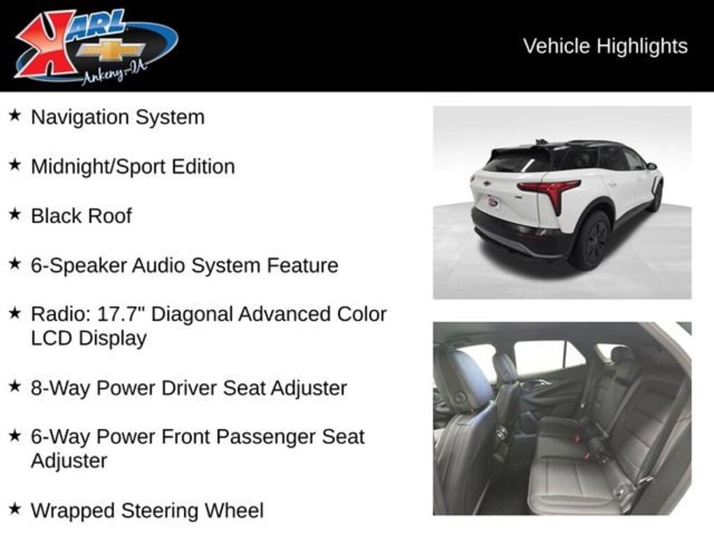 Summit White 2026 Chevrolet Blazer EV LT 4D Sport Utility Electric Motor 1-Speed Automatic AWD Price includes: $1000 - Chevrolet Consumer Cash Program. Exp. 03/02/2026