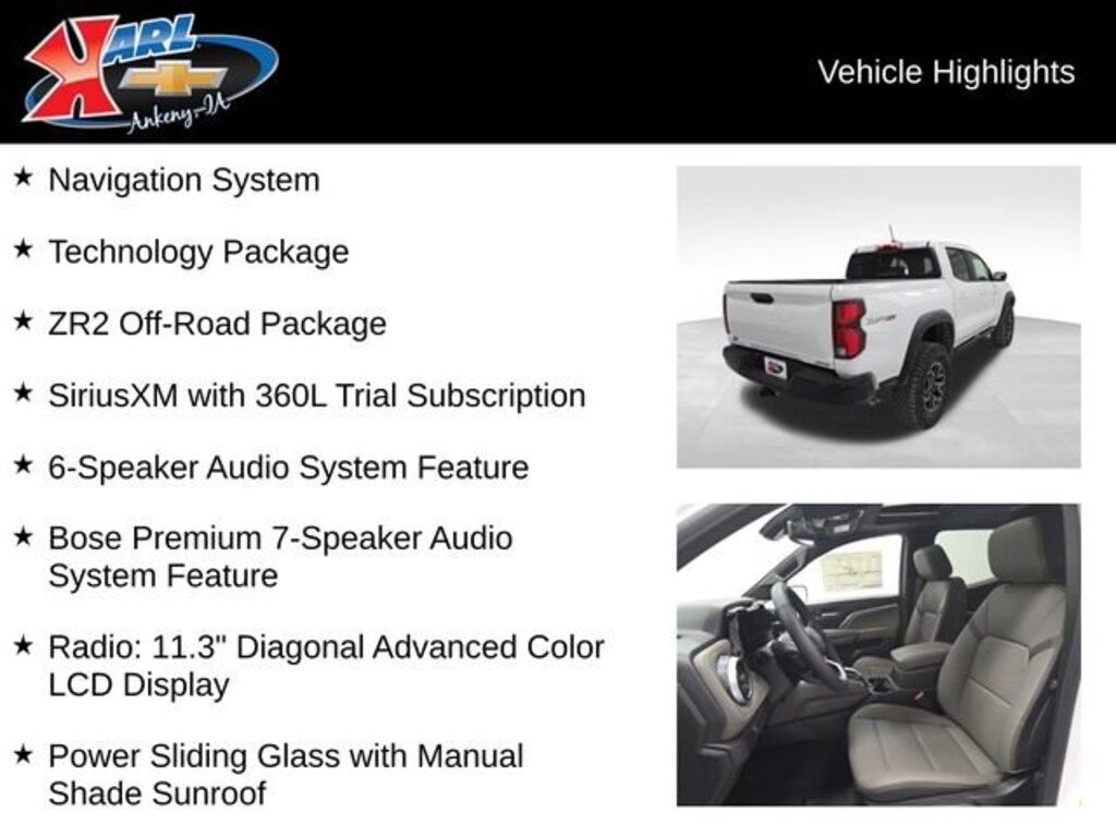 Summit White 2026 Chevrolet Colorado ZR2 4D Crew Cab 2.7L I4 Turbocharged DOHC 16V LEV3-ULEV50 310hp 8-Speed Automatic 4WD Price includes: $500 - Chevrolet Consumer Cash Program. Exp. 03/02/2026