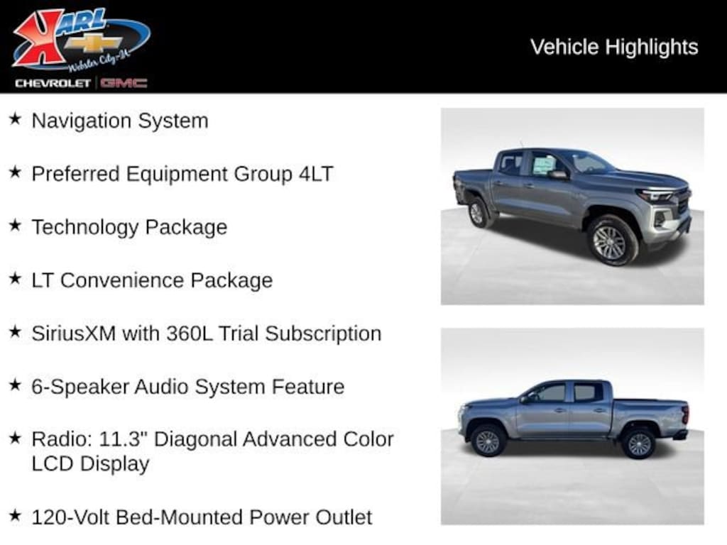 At Karl Chevrolet/GMC, we want to help you find the best new or used car in Webster City that suits your needs. When you buy a new car at Karl Chevrolet/GMC, you know you're finding a vehicle you can rely on. We have a great selection of CarBravo Quality Pre-Owned Vehicles. We also pride ourselves in creating a friendly atmosphere and a reliable Dealership that you can trust. Call us and our experts will be glad to help you! (515) 209-7117. *Equipment and options are generated by a 3rd party vendor, exact vehicle options may vary. Please see a salesperson for complete details and vehicle information. Price includes: $1000 - Chevrolet Consumer Cash Program. Exp. 03/31/2026