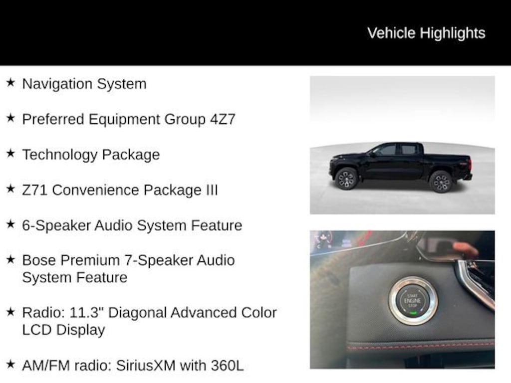 Factory MSRP: $50,701 $4,724 off MSRP! 4-Way Manual Passenger Seat Adjuster, 6-Speaker Audio System Feature, Adaptive Cruise Control, AM/FM radio: SiriusXM with 360L, Auto-dimming Rear-View mirror, Automatic Emergency Braking, Automatic temperature control, Bose Premium 7-Speaker Audio System Feature, Brake assist, Chevy Safety Assist, Compass, Delay-off headlights, Driver Memory Settings, Driver Seatback Map Pocket, Electronic Stability Control, Emergency communication system: OnStar, Following Distance Indicator, Forward Collision Alert, Front anti-roll bar, Front Center Armrest, Front dual zone A/C, HD Surround Vision, Heated Steering Wheel, Navigation System, Occupant sensing airbag, Outside temperature display, Passenger vanity mirror, Perforated Leather-Appointed Seat Trim, Power steering, Power windows, Preferred Equipment Group 4Z7, Radio: 11.3 Diagonal Advanced Color LCD Display, Rear Center Armrest, Rear Pedestrian Alert, Steering Wheel Mounted Audio Controls, Steering wheel mounted audio controls, Technology Package, Tilt steering wheel, Wheels: 18 x 8.5 Android Dark Full Gloss Aluminum, Wireless Phone Projection, Z71 Convenience Package III.