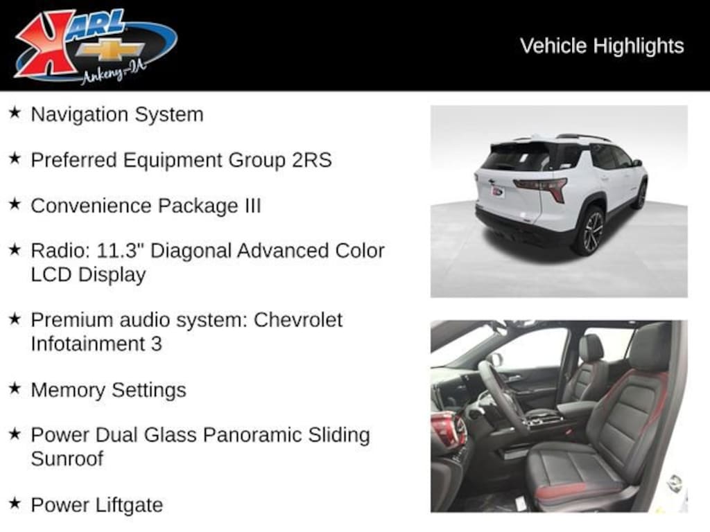 Factory MSRP: $42,280 $709 off MSRP! 25/29 City/Highway MPG AWD, 2-Way Power Driver Lumbar Control Seat Adjuster, Convenience Package III, Driver 8-Way Power Seat Adjuster, Evotex Seat Trim, Front Bucket Seats, Front Center Armrest, Front Fog Lamps, Front Passenger 2-Way Power Lumbar Seat Adjuster, Front Passenger 4-Way Manual Seat Adjuster, Front Passenger 8-Way Power Seat Adjuster, HD Surround Vision, Heated Rear Outboard Seating Positions, Memory Settings, Navigation System, Power Dual Glass Panoramic Sliding Sunroof, Power Liftgate, Preferred Equipment Group 2RS, Premium audio system: Chevrolet Infotainment 3, Radio: 11.3 Diagonal Advanced Color LCD Display, Rear Pedestrian Alert, Split folding rear seat, Traffic Sign Recognition, Ventilated Driver Seat, Ventilated Front Passenger Seat, Wheels: 20 Black Machined-Face Aluminum.