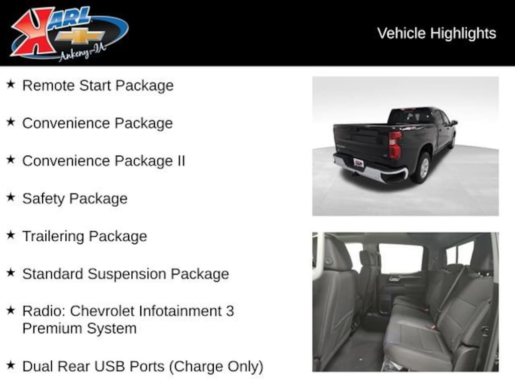 Factory MSRP: $59,420 $5,295 off MSRP! 10-Speed Automatic, 4WD, Black Cloth, 10-Way Power Driver Seat w/Lumbar, 12.3 Multicolor Reconfigurable Digital Display, 120-Volt Bed Mounted Power Outlet, 120-Volt Interior Power Outlet, 40/20/40 Front Split-Bench Seat, 6-Speaker Audio System, All-Star Edition, Apple CarPlay/Android Auto, Bumpers: chrome, Chrome Mirror Caps, Convenience Package, Convenience Package II, Dual Rear USB Ports (Charge Only), Dual-Zone Automatic Climate Control, Electric Rear-Window Defogger, HD Surround Vision, Heated Driver & Front Outboard Passenger Seats, Heated Power-Adjustable Outside Mirrors, Heated Steering Wheel, Hitch Guidance, Hitch Guidance w/Hitch View, In-Vehicle Trailering System App, Integrated Trailer Brake Controller, IntelliBeam Automatic High Beam On/Off, Keyless Open & Start, LED Cargo Area Lighting, Manual Tilt/Telescoping Steering Column, Perimeter Lighting, Power Sliding Rear Window w/Rear Defogger, Premium audio system: Chevrolet Infotainment 3 Premium, Radio: Chevrolet Infotainment 3 Premium System, Rear 60/40 Folding Bench Seat (Folds Up), Rear Cross Traffic Braking, Rear Pedestrian Alert, Remote Start Package, Remote Vehicle Starter System, Safety Package, Split folding rear seat, Standard Suspension Package, Theft Deterrent System (Unauthorized Entry), Trailer Camera Provisions, Trailer Side Blind Zone Alert, Trailering Package, Ultrasonic Front & Rear Park Assist, Universal Home Remote, Wheels: 17 x 8 Bright Silver Painted Aluminum, Wrapped Steering Wheel.