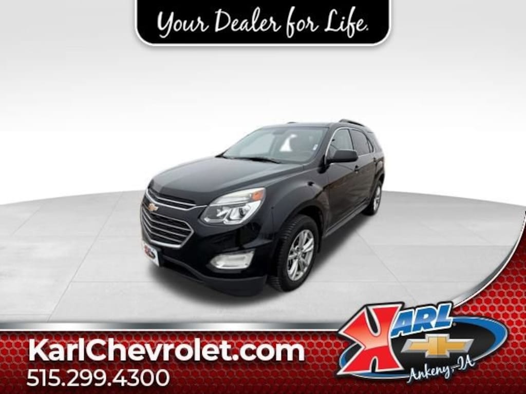 Recent Arrival! CARFAX One-Owner. Clean CARFAX. Certified. Black 2016 Chevrolet Equinox LT 2.4L 4-Cylinder SIDI DOHC VVT 22/32 City/Highway MPG 6-Speed Automatic with Overdrive FWDAt Karl Chevrolet we want to help you find the best new or used car in Ankeny that suits your needs. Check out the 2016 Chevrolet Equinox For Sale in Ankeny, IA. When you buy a new car at Karl Chevrolet you know you're finding a vehicle you can rely on. We have a great selection of Platinum Quality Pre-Owned Vehicles. We also pride ourselves in creating a friendly atmosphere and reliable new car dealership that you can trust. Call us with any questions about our 2016 Chevrolet Equinox and our experts will be glad to help you! (515) 299-4300. *Equipment and options are generated by a 3rd party vendor, exact vehicle options may vary. Please see a salesperson for complete details and vehicle information.Certification Program Details: Karl Chevrolet of Ankeny, The Nation's #1 CarBravo certified dealer, where platinum quality vehicles and unmatched benefits come together! ?? Rigorous Inspection Undergoes a focused inspection to verify key systems, giving you added peace of mind. ?? Limited Powertrain Warranty Includes a standard 30-day / 1,000-mile Powertrain Limited Warranty, covering engine, transmission, drive system and more. ?? Vehicle History Review Comes with a full car history report so you can verify the past and condition of the vehicle. ?? Roadside Assistance & Courtesy Transportation Coverage for the warranty period, including roadside support and alternative transportation if needed. CarBravo ? 10-Day / 500-Mile Exchange Option If for any reason the vehicle isnât the right fit, you have an exchange window (check specific dealership policy). Affordable, Certified, Reliable. The BravoBudget label means youâre getting a thoughtfully selected vehicle that meets higher mileage or slightly older model criteria but still backed by the CarBravo process and protections.