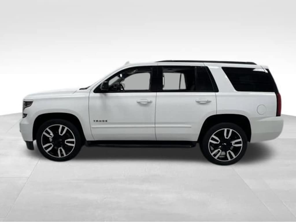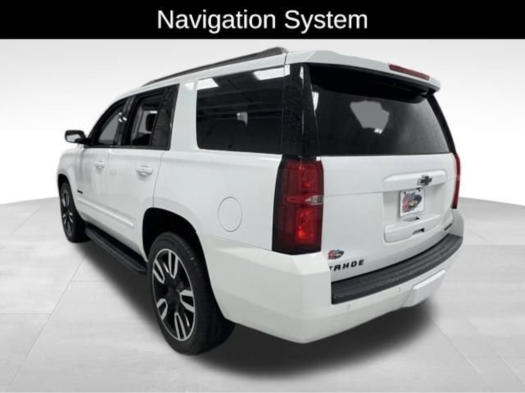 Recent Arrival! Local Trade. Running Boards. Certified. White 2019 Chevrolet Tahoe Premier 4WD 4DR PREMIER EcoTec3 6.2L V8 4WD, Light Cashmere/Dark Cashmere Leather, 1st & 2nd Row Color-Keyed Carpeted Floor Mats, 3rd Row 60/40 Power Fold Split-Bench, 4-Wheel Antilock Disc Brakes w/Brake Assist, 5 12-Volt Auxiliary Power Outlets, Adjustable pedals, Apple CarPlay/Android Auto, Auto High-beam Headlights, Auto-Dimming Inside Rear-View Mirror, Black Assist Steps w/Chrome Accent Strip, Bluetooth® For Phone, Bose Centerpoint Premium 10-Speaker Surround Sound, Cargo Net, Color-Keyed Carpeting Floor Covering, Driver Inboard & Front Passenger Airbags, Electronic Cruise Control w/Set & Resume Speed, Enhanced Driver Alert Package (Y86), Exterior Parking Camera Rear, Floor Console, Fog Lamps, Forward Collision Alert, Front & Rear Park Assist, Front dual zone A/C, Hands Free Power Liftgate, HD Radio, Heated & Ventilated Driver & Front Passenger Seats, Heated 2nd Row Seats, Heated Leather Wrapped Steering Wheel, IntelliBeam Headlamps, Lane Change Alert w/Side Blind Zone Alert, Lane Keep Assist w/Lane Departure Warning, License Plate Front Mounting Package, Low Speed Forward Automatic Braking, Magnetic Ride Control Suspension Package, Memory Settings, Navigation System, Passive Entry System, Pedal memory, Power driver seat, Power Release 2nd Row Bucket Seats, Power Sunroof, Power Tilt & Telescopic Steering Column, Power-Adjustable Accelerator & Brake Pedals, Power-Folding Heated Outside Mirrors, Preferred Equipment Group 1LZ, Push Button Keyless Start, Radio: Chevrolet Infotainment AM/FM Stereo w/Nav, Rain sensing wipers, Rear air conditioning, Rear Cross Traffic Alert, Rear Seat Blu-Ray/DVD Entertainment System, Remote Keyless Entry, Remote Vehicle Start, Roof-Mounted Luggage Rack Side Rails, Single-Slot CD/MP3 Player, SiriusXM NavTraffic, SiriusXM Radio, Sun, Entertainment & Destinations Package, Universal Home Remote, Wheels: 20 x 9 Polished-Aluminum, Wireless Charging. 14/22 City/Highway MPG 10-Speed Automatic with Overdrive 4WD