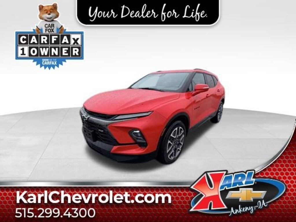 Recent Arrival! Clean CARFAX. Red Hot 2023 Chevrolet Blazer RS 3.6L V6 SIDI 19/27 City/Highway MPG 9-Speed Automatic with Overdrive FWDAt Karl Chevrolet we want to help you find the best new or used car in Ankeny that suits your needs. Check out the 2023 Chevrolet Blazer For Sale in Ankeny, IA. When you buy a new car at Karl Chevrolet you know you're finding a vehicle you can rely on. We have a great selection of Platinum Quality Pre-Owned Vehicles. We also pride ourselves in creating a friendly atmosphere and reliable new car dealership that you can trust. Call us with any questions about our 2023 Chevrolet Blazer and our experts will be glad to help you! (515) 299-4300. *Equipment and options are generated by a 3rd party vendor, exact vehicle options may vary. Please see a salesperson for complete details and vehicle information.