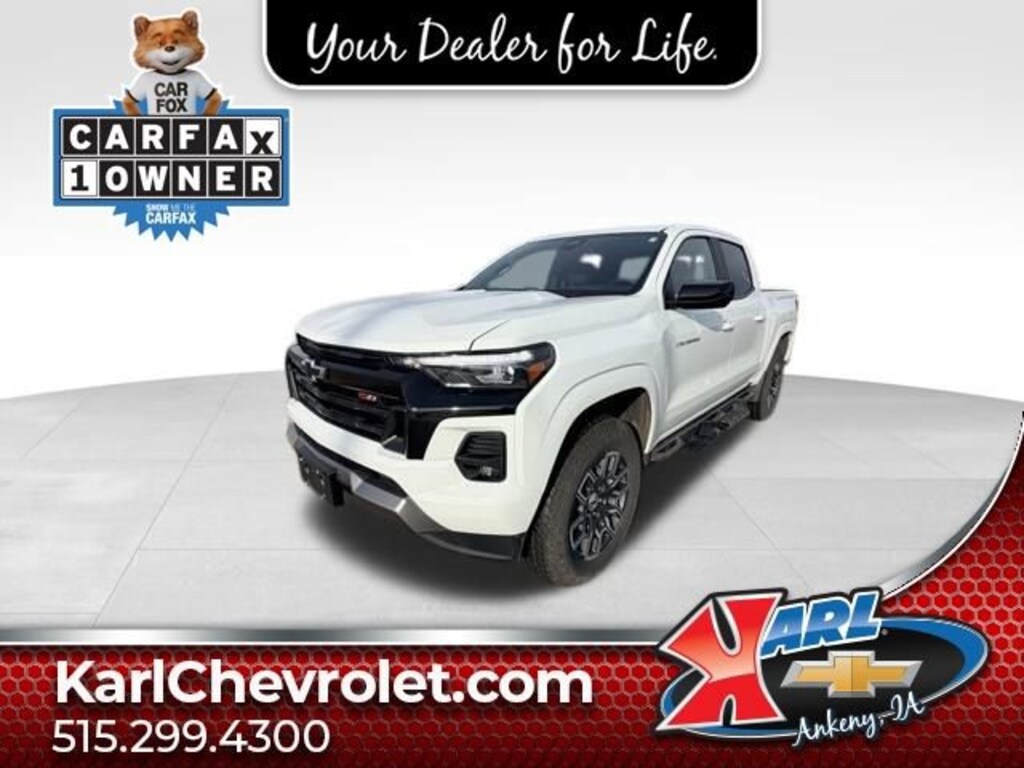 Recent Arrival! CARFAX One-Owner. Clean CARFAX. Summit White 2024 Chevrolet Colorado Z71 4WD CREW CAB Z71 2.7L I4 Turbocharged DOHC 16V LEV3-ULEV50 310hp 4WD. 18/23 City/Highway MPG 8-Speed Automatic 4WDAt Karl Chevrolet we want to help you find the best new or used car in Ankeny that suits your needs. Check out the 2024 Chevrolet Colorado For Sale in Ankeny, IA. When you buy a new car at Karl Chevrolet you know you're finding a vehicle you can rely on. We have a great selection of Platinum Quality Pre-Owned Vehicles. We also pride ourselves in creating a friendly atmosphere and reliable new car dealership that you can trust. Call us with any questions about our 2024 Chevrolet Colorado and our experts will be glad to help you! (515) 299-4300. *Equipment and options are generated by a 3rd party vendor, exact vehicle options may vary. Please see a salesperson for complete details and vehicle information.