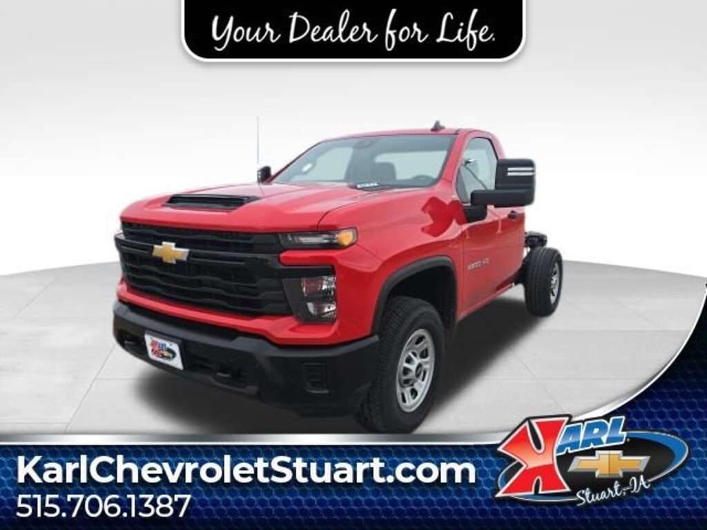 Red Work Truck 4WD 6.6L V8Here at Karl Chevrolet of Stuart we want to help you find the best vehicle to suit your needs. With our huge selection of new and pre-owned vehicles, we're sure to have the right car for you! We pride ourselves on creating a friendly buying experience and earning the title of Your Dealer for Life. Give us a call at 515.523.1201 and speak to our experts to find out just how easy it is to get the vehicle of your dreams!*Equipment and options are generated by a 3rd party vendor, exact vehicle options may vary. Please see a salesperson for complete details and vehicle information.Clean CARFAX.
