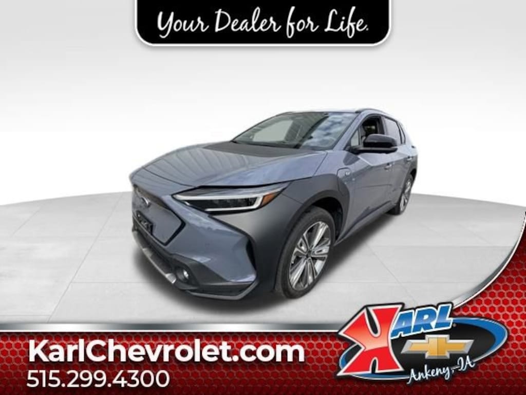 Recent Arrival! CARFAX One-Owner & Local Trade! Certified. Mist 2023 Subaru Solterra Limited LIMITED AWD Electric Motor 11 Speakers, ABS brakes, Alloy wheels, Auto High-beam Headlights, Electronic Stability Control, Front dual zone A/C, harman/kardon® Speakers, Heated door mirrors, Heated Front Bucket Seats, Heated rear seats, Heated steering wheel, Illuminated entry, Low tire pressure warning, Memory seat, Navigation system: Cloud Navigation System, Power driver seat, Power Liftgate, Radio: Subaru Solterra Connect 12.3 Multimedia System, Rain sensing wipers, Remote keyless entry, StarTex Upholstery, Traction control, Wheels: 20 x 7.5 J Aluminum-Alloy Gray Finish. 1-Speed Automatic AWDAt Karl Chevrolet we want to help you find the best new or used car in Ankeny that suits your needs. Check out the 2023 Subaru Solterra For Sale in Ankeny, IA. When you buy a new car at Karl Chevrolet you know you're finding a vehicle you can rely on. We have a great selection of Platinum Quality Pre-Owned Vehicles. We also pride ourselves in creating a friendly atmosphere and reliable new car dealership that you can trust. Call us with any questions about our 2023 Subaru Solterra and our experts will be glad to help you! (515) 299-4300. *Equipment and options are generated by a 3rd party vendor, exact vehicle options may vary. Please see a salesperson for complete details and vehicle information.Certification Program Details: Karl Chevrolet of Ankeny, your newest CarBravo dealer, where platinum quality vehicles and unmatched benefits come together! -Comprehensive Limited Bumper to Bumper Warranty. -24/7 Roadside Assistance: -Multi-Point Vehicle Inspection: Every vehicle undergoes a Platinum Quality Certified Inspection known throughout the industry to ensure top quality. -Vehicle Exchange Program. Within 10-Days and 500 miles -Complimentary Vehicle History Report -Nationwide Dealer Network Support: Enjoy the backing of the extensive CarBravo and GM dealership network. -OnStar and SiriusXM Trials: Enjoy connected services and entertainment with included trial subscriptions. -Terms and conditions may apply. With every vehicle purchased, you'll enjoy the peace of mind that comes with a limited warranty, 24/7 roadside assistance, and a comprehensive vehicle inspection.